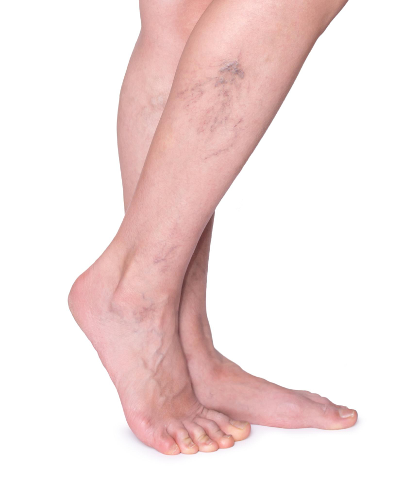 Varicose veins (a.k.a. “spider veins”) are small blood vessels that are red, purple, and/or blue that twist and turn. They are easily visible through the skin, making them almost impossible to cover up with makeup. They are typically visible on the legs and face.